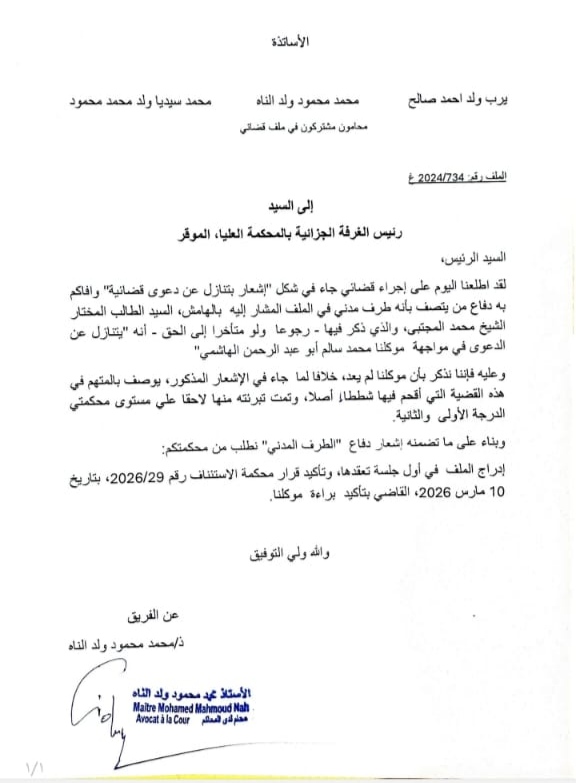 دفاع أبو عبد الرحمن يرد على إشعار ولد المجتبى للمحكمة العليا بالتنازل عن دعواه