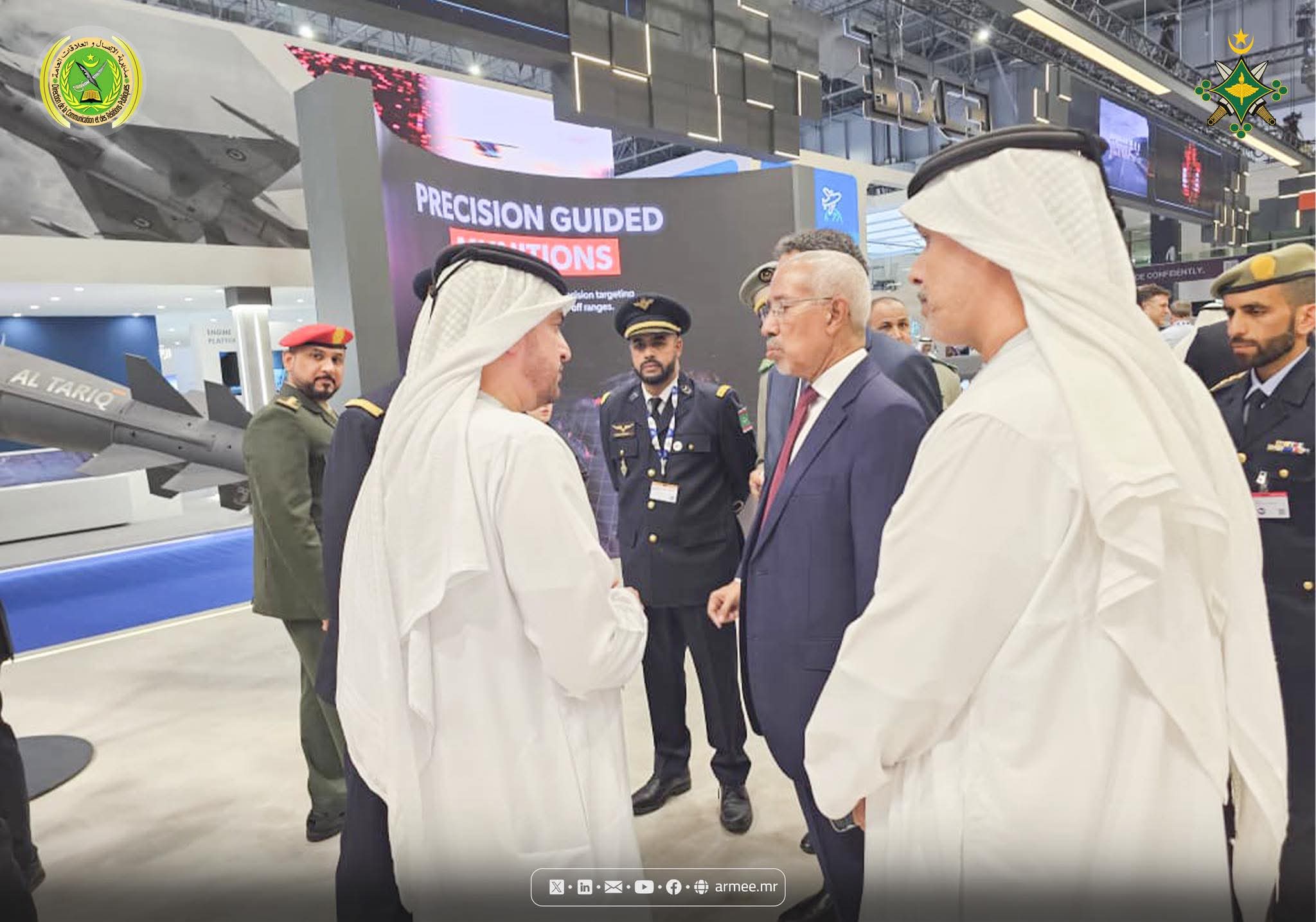 شارك معالي وزير الدفاع وشؤون المتقاعدين وأولاد الشهداء؛ السيد حنن ولد سيدي، فى معرض دبي للطيران، في دورته التاسعة عشرة، والمنعقدة في الفترة من 17 إلى 21 نوفمبر 2025، تلبية لدعوة من سمو الشيخ حمدان بن محمد بن راشد آل مكتوم؛ ولي عهد دبي، نائب رئيس مجلس الوزراء، وزير الدفاع.
