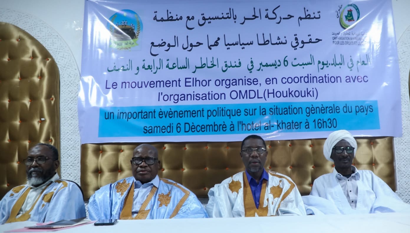 قالت حركة الحر إن مؤتمر ألاك الذي نظم مايو 1958، وشكل بداية الاستقلال الداخلي لموريتانيا كان "إعلانا عن ميلاد دولة مؤسسة على مشروع قبلي إقطاعي تتجذر فيه العبودية والطبقية وقائم على الإقصاء".