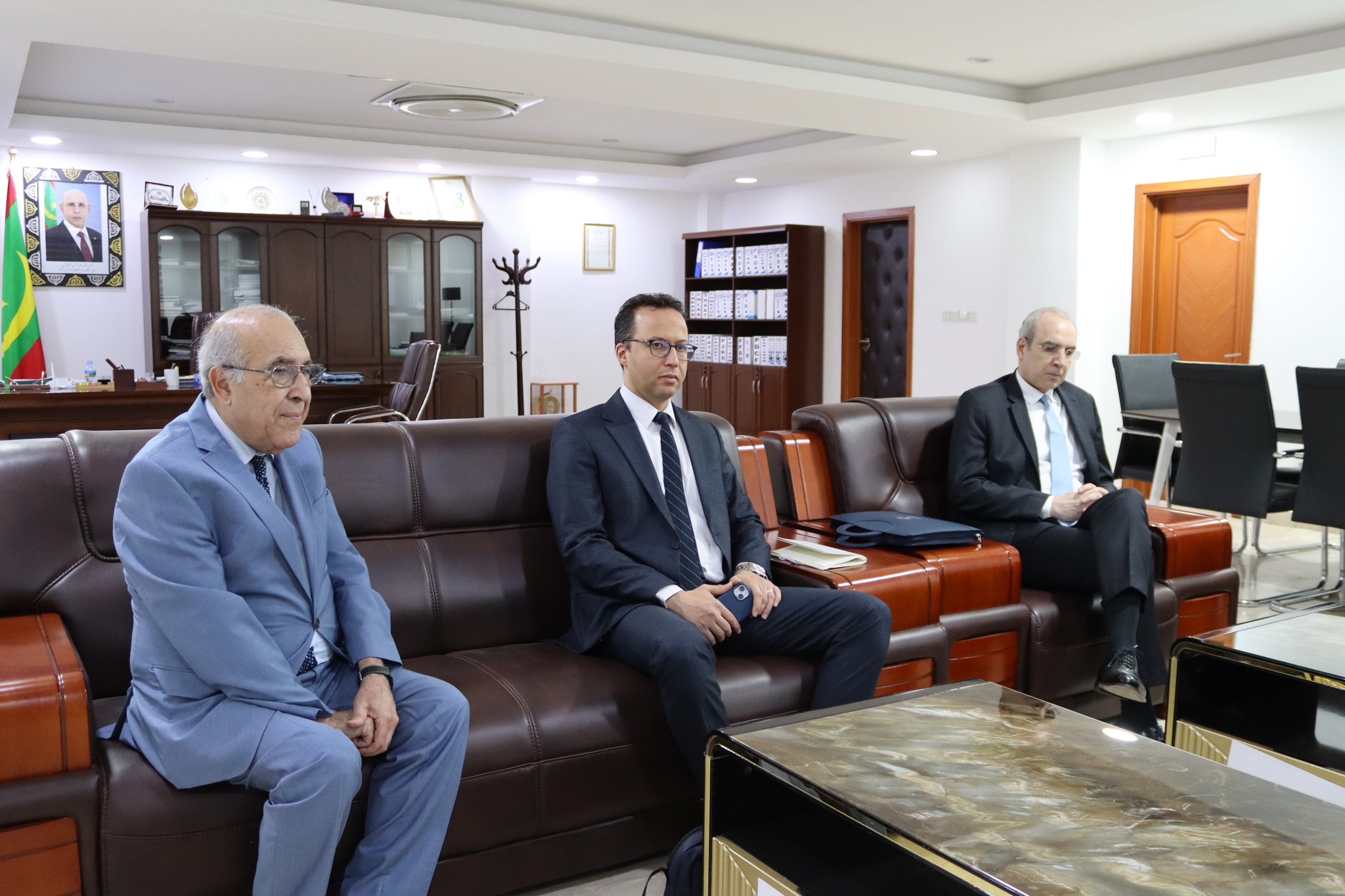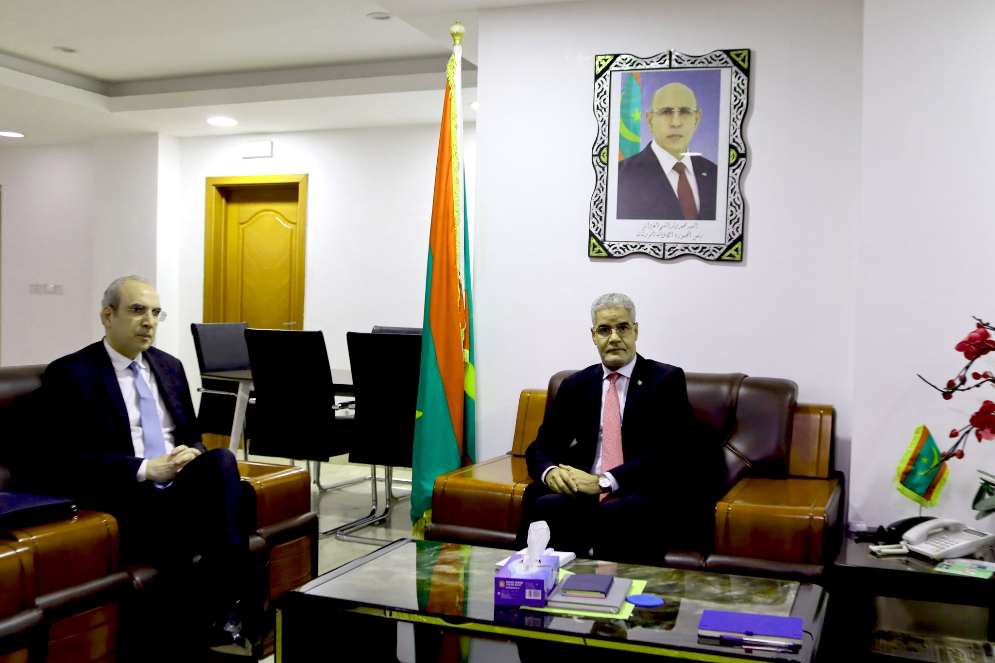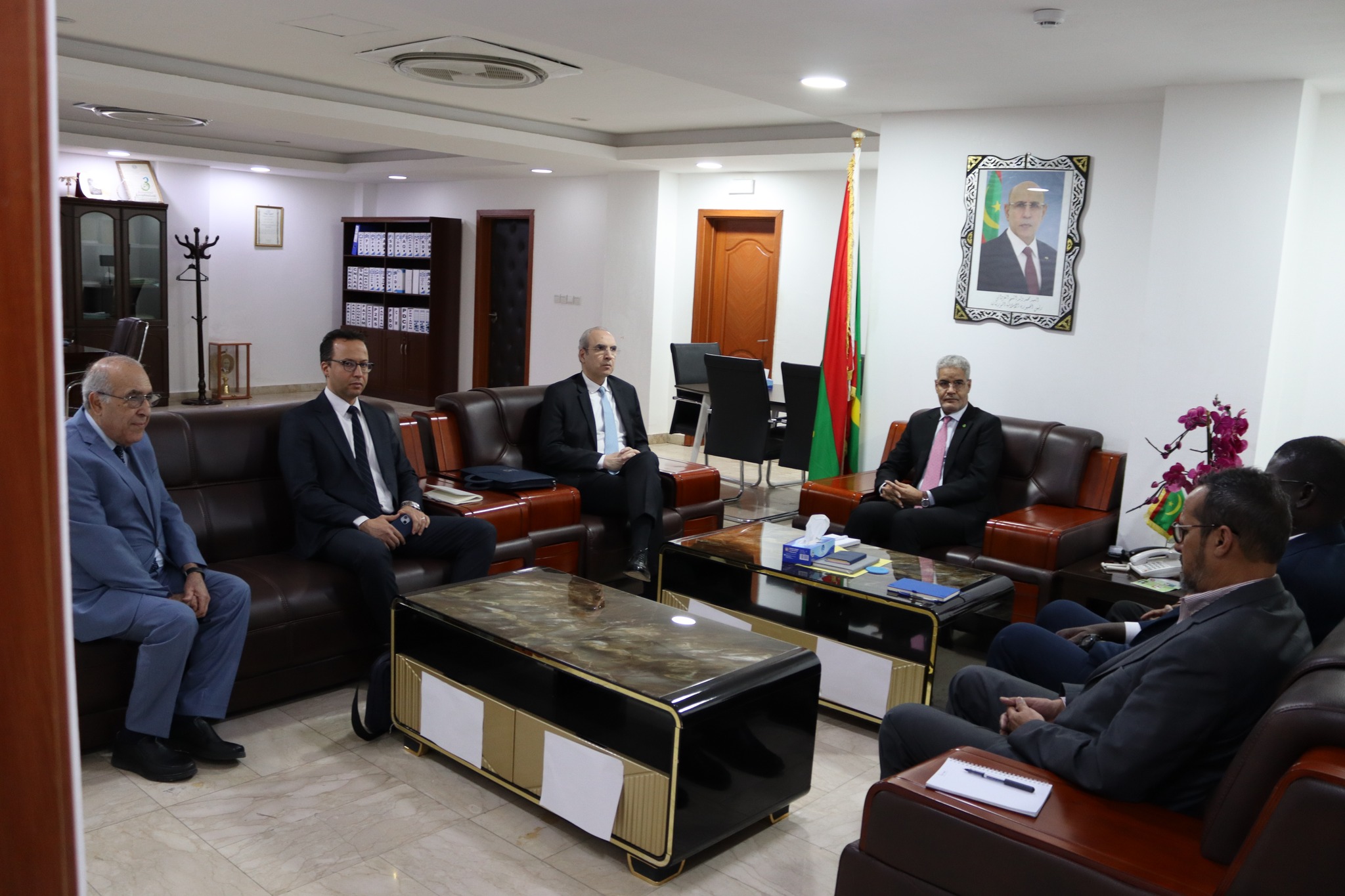 وجرى اللقاء بحضور المكلف بمهمة لدى ديوان وزير الزراعة والسيادة الغذائية السيد محمد يحي ولد محمد محمود، الأمين العام وكالة، والمستشار الفني المكلف بالبحث والتكوين والمستشار الفني المكلف بحماية النباتات وتنمية الشعب.