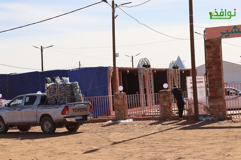 على أطراف المدينة وقف الجمالة استعدادا لاستقبال الرئيس بطابع الأصالة، وغير بعيد منهم تظهر استعدادات الدرك بسياراتهم وأفرادهم وهم يبدؤون في تأمين مسار الرئيس من المطار إلى المدينة.