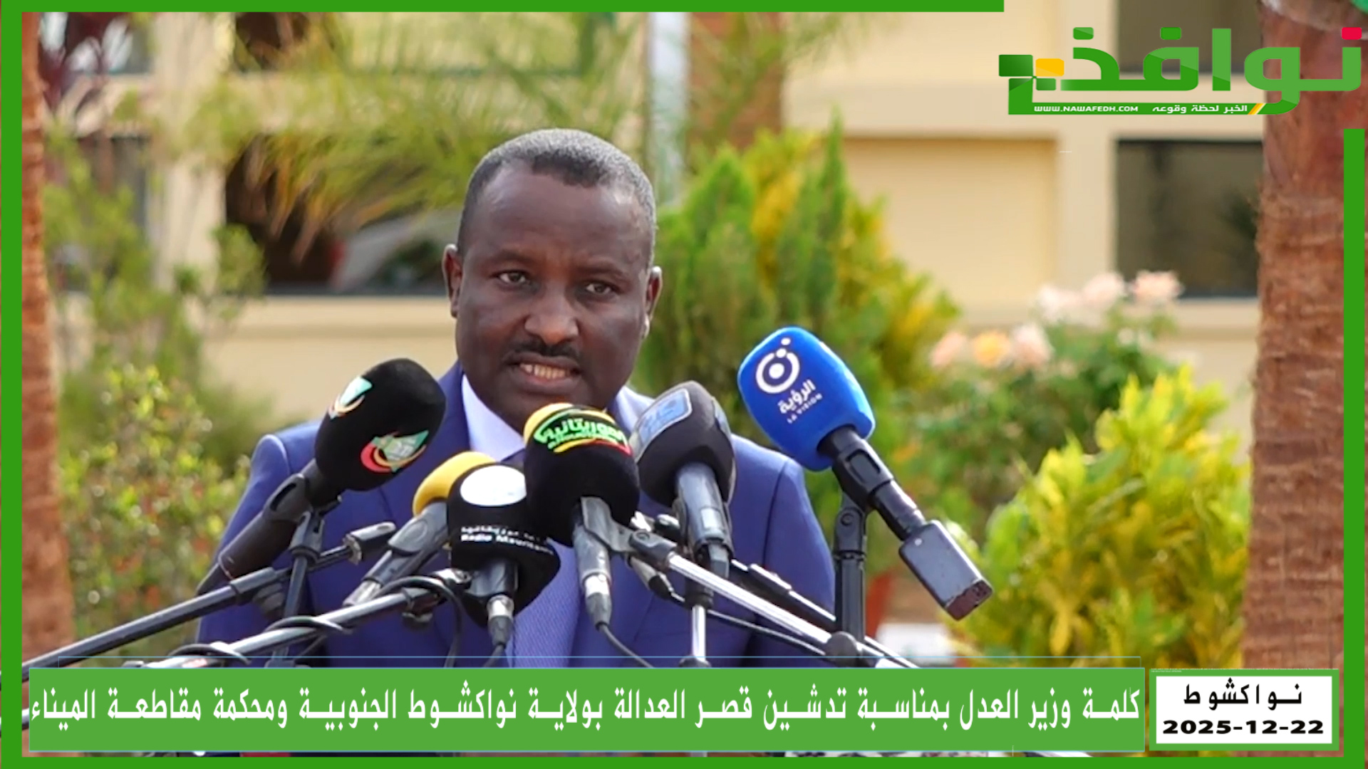 وأضاف في كلمته بمناسبة تدشين قصر العدالة بولاية نواكشوط الجنوبية، ومحكمة مقاطعة الميناء أن الإصلاحات التي شهدها القطاع خلال السنوات الأخيرة تعكس إرادة سياسية واضحة لجعل القضاء أكثر استقلالية وفعالية وقربا من المواطن.