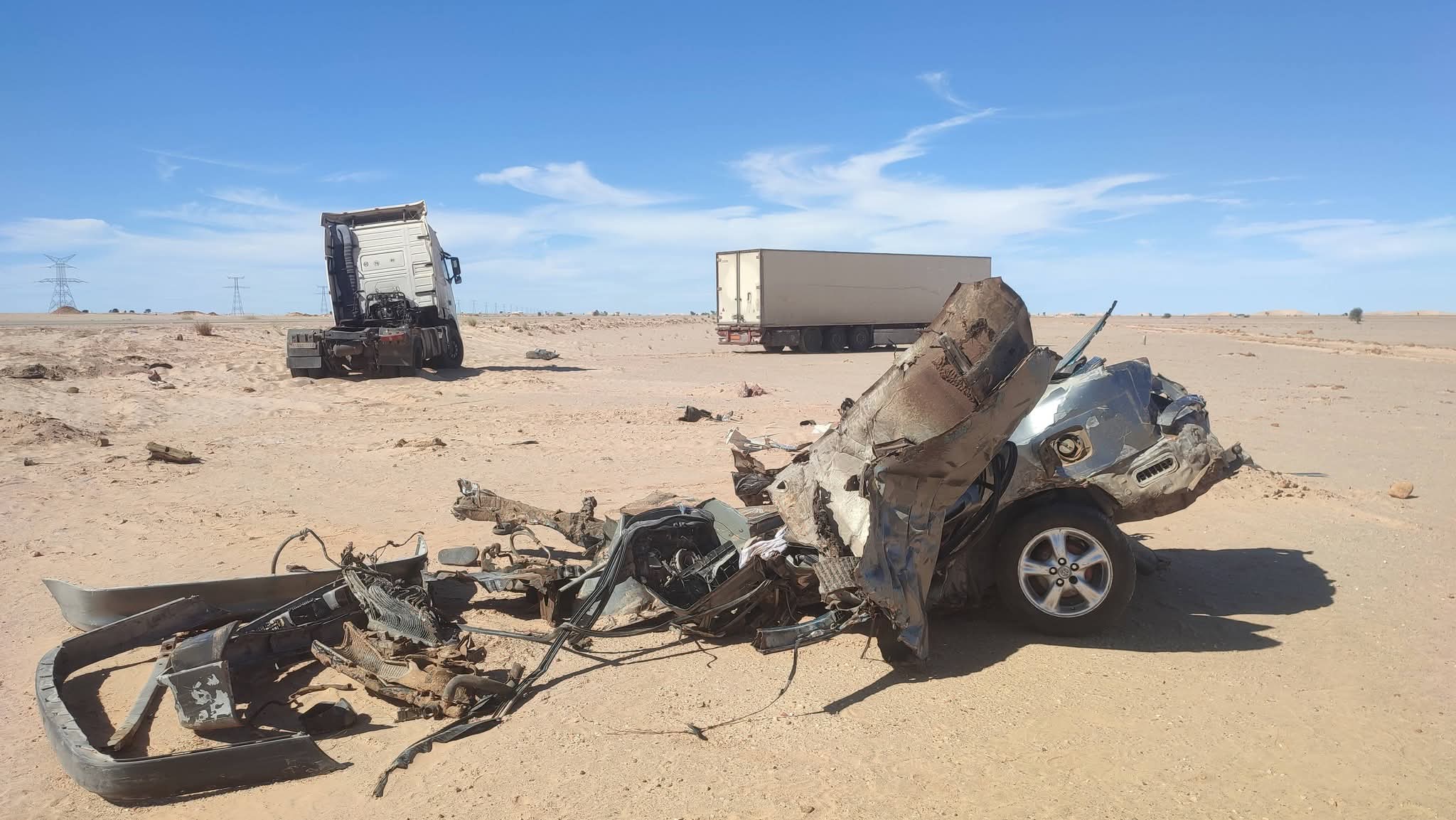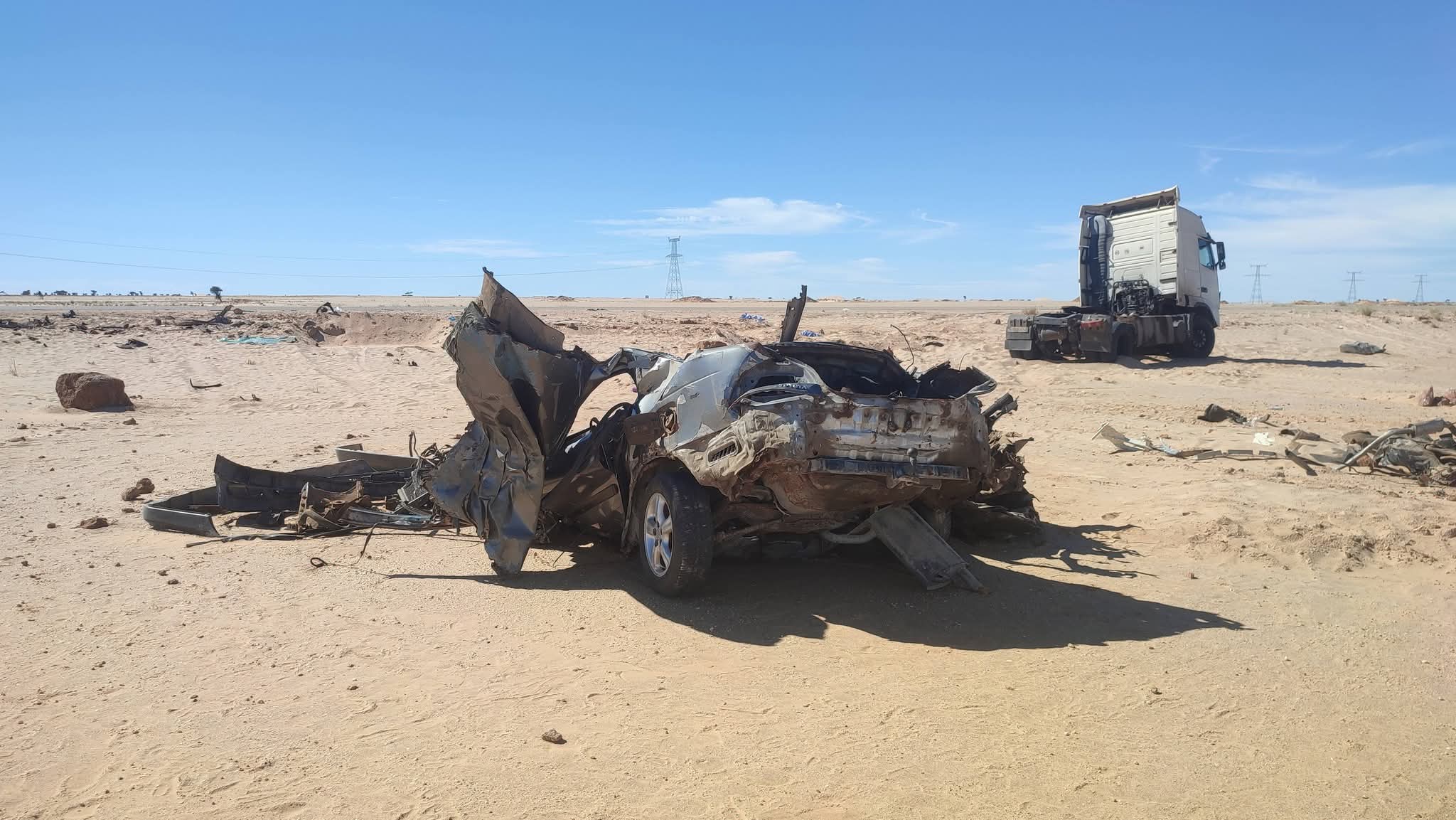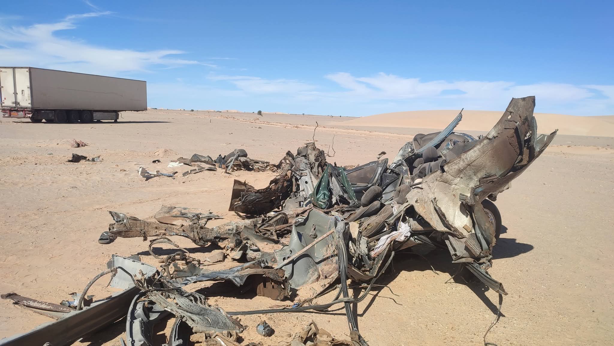 صور من موقع الحادث الذي وقع أمس على طريق نواذيبو وراح ضحيته ثلاثة أشخاص