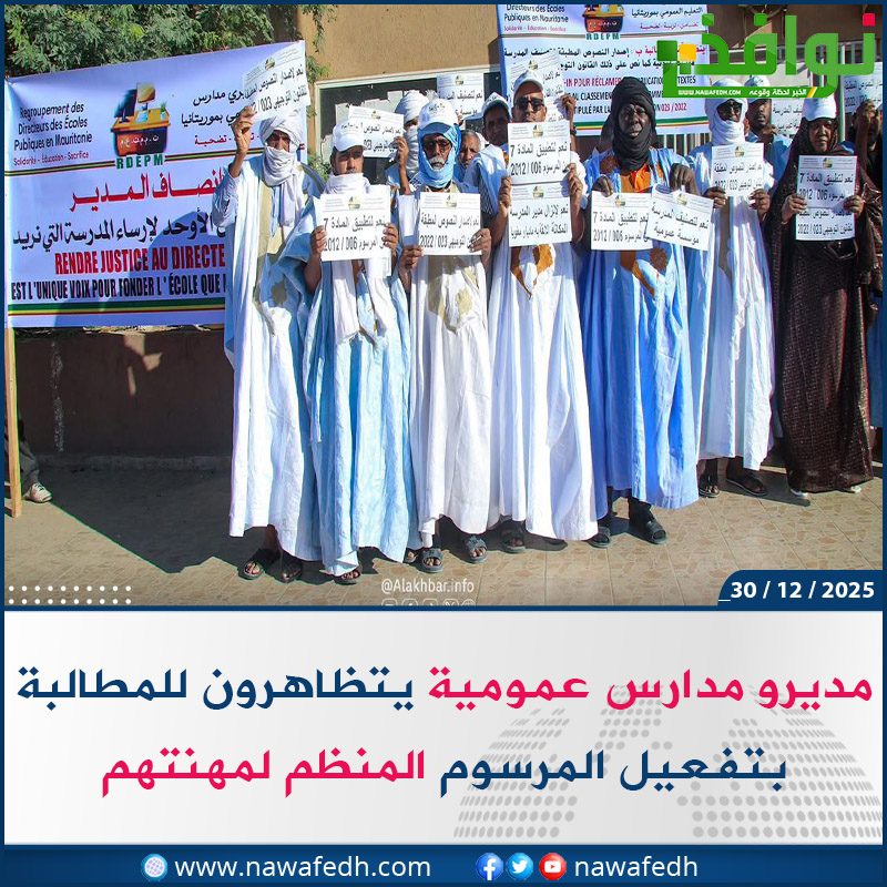 وأضاف ولد عمير أن الوقفة جاءت كذلك بعد تلكؤ الوزارة في إصدار المقررات التطبيقية للقانون التوجيهي 0023، خاصة في مواده 2 و4 و82، لافتا إلى أن هذه المجموعة لجأت للتظاهر لتذكير الوزارة بوجود خلل مؤسسي وقانوني يعاني منه مديرو المدارس العمومية في موريتانيا.