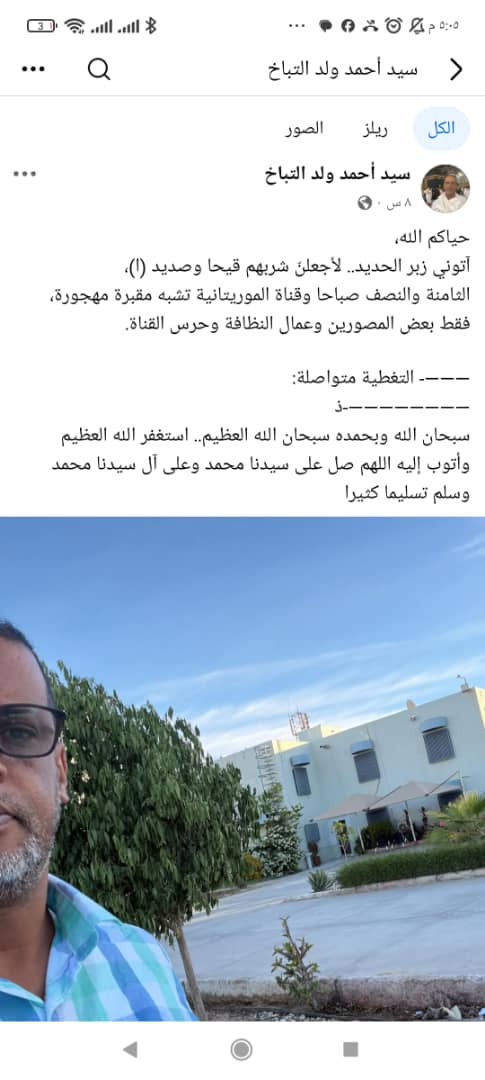 نوافذ(نواكشوط) ــ كشفت تدوينات متلاحقة للصحفي بقناة الموريتانية، سيدي أحمد ولد التباخ، عن نهاية مفاجئة لمسار شدّ وجذب محتدم بينه وبين إدارة القناة، بعد وساطة وُصفت بـ“الثقيلة الوزن” قادها وزير سابق وقاضٍ "نزيه"، أنهت الخلاف وطوت الملف في ظروف أثارت الكثير من علامات الاستفهام.