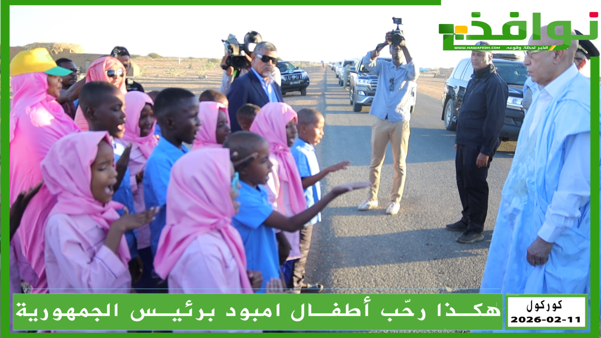 رحب أطفال مدينة أمبود بولاية كوركول بطريقتهم الخاصة برئيس الجمهورية محمد ولد الشيخ الغزواني عشية وصوله للمدينة. وردد الأطفال بحناجرهم البريئة كلمات مرحبة لرئيس الجمهورية ومشيدة بإنجازاته وفي مقدمتها إطلاق المدرسة الجمهورية.