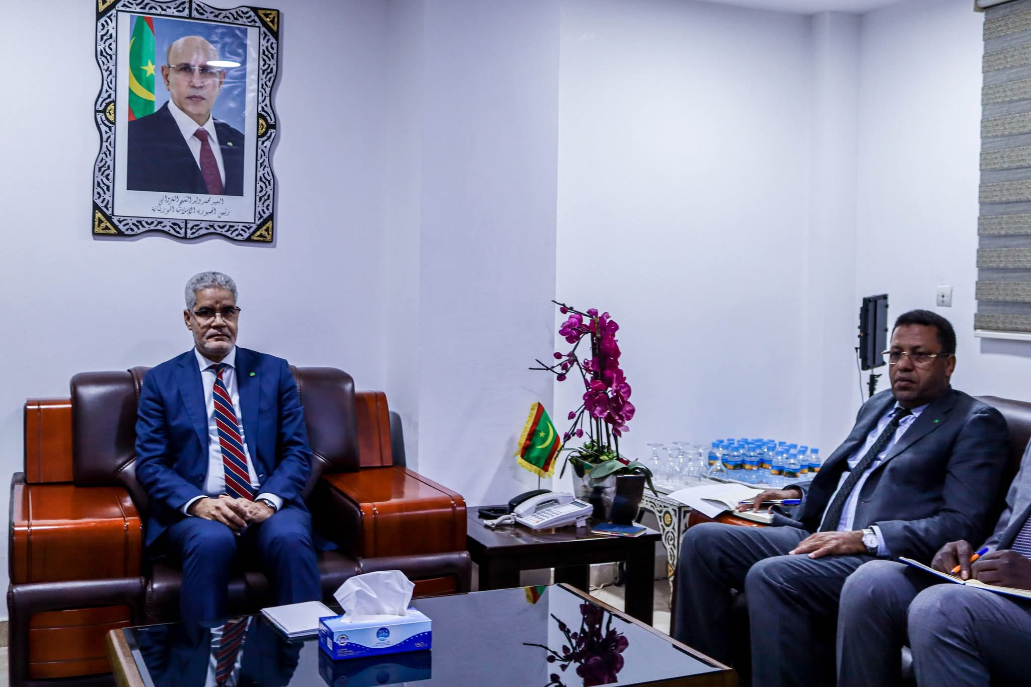 وجرى اللقاء بحضور الأمين العام لوزارة الزراعة والسيادة الغذائية السيد أحمد سالم ولد العربي، والمستشار الفني لوزير الزراعة والسيادة الغذائية المكلف بحماية النباتات وتنمية الشعب الزراعية، ومدير التعاون والتخطيط والإحصاءات بالوزارة.