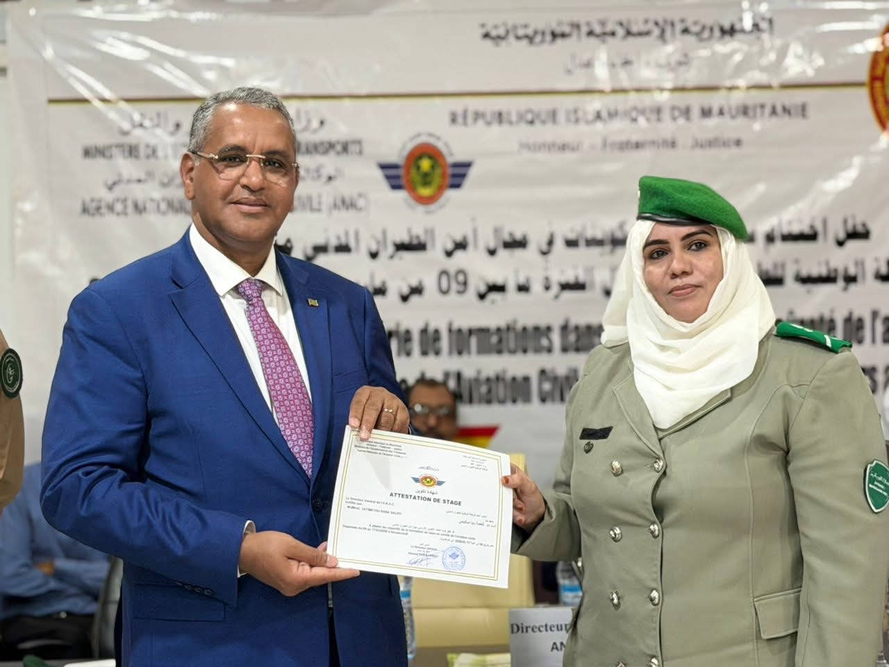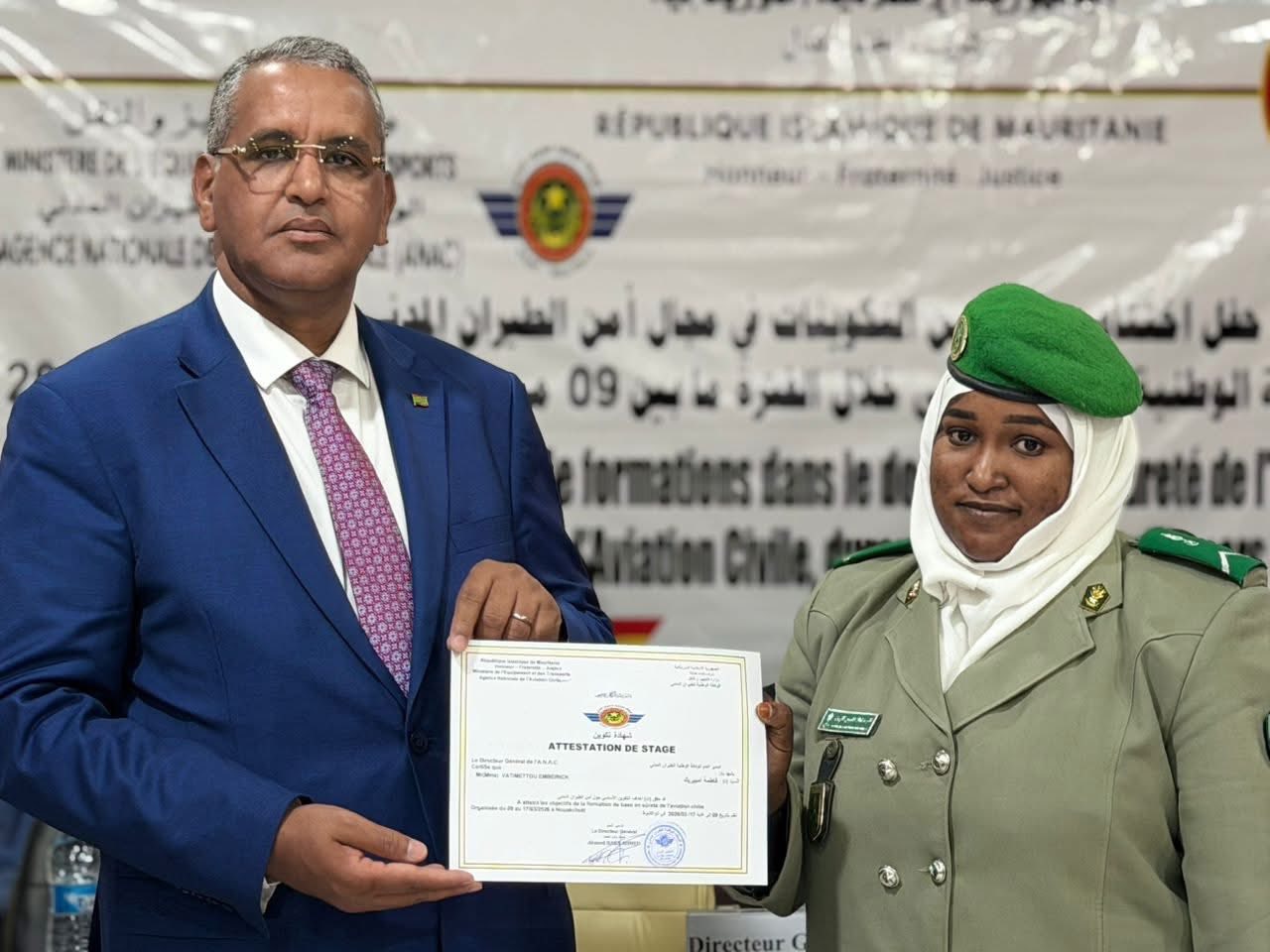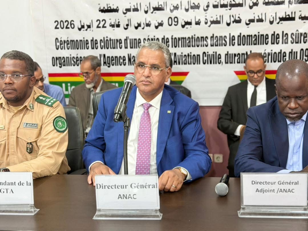 أشرف المدير العام للوكالة الوطنية للطيران المدني، السيد باب أحمد محمد باب أحمد، اليوم الخميس، على حفل اختتام سلسلة من الدورات التكوينية المتخصصة في مجال أمن الطيران المدني، والتي نظمتها الوكالة لصالح بعض الأطقم العاملة بمطار نواكشوط الدولي أم التونسي، خلال الفترة الممتدة من 09 مارس إلى 22 أبريل 2026.