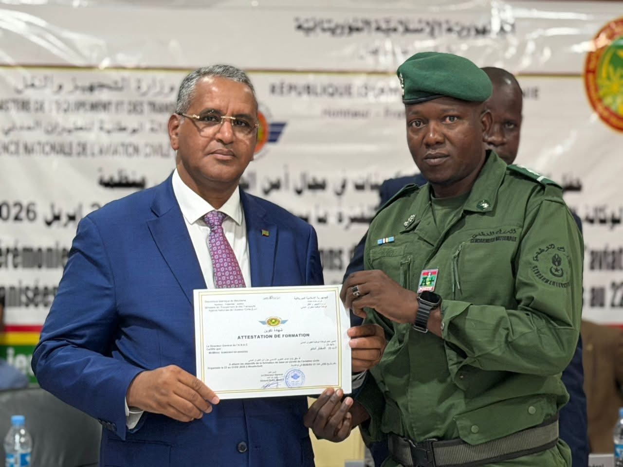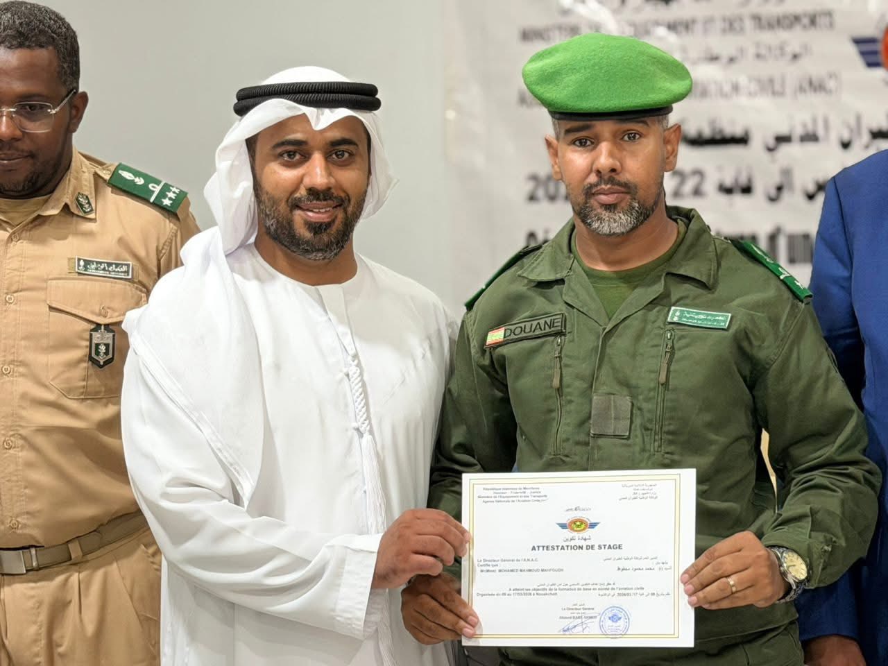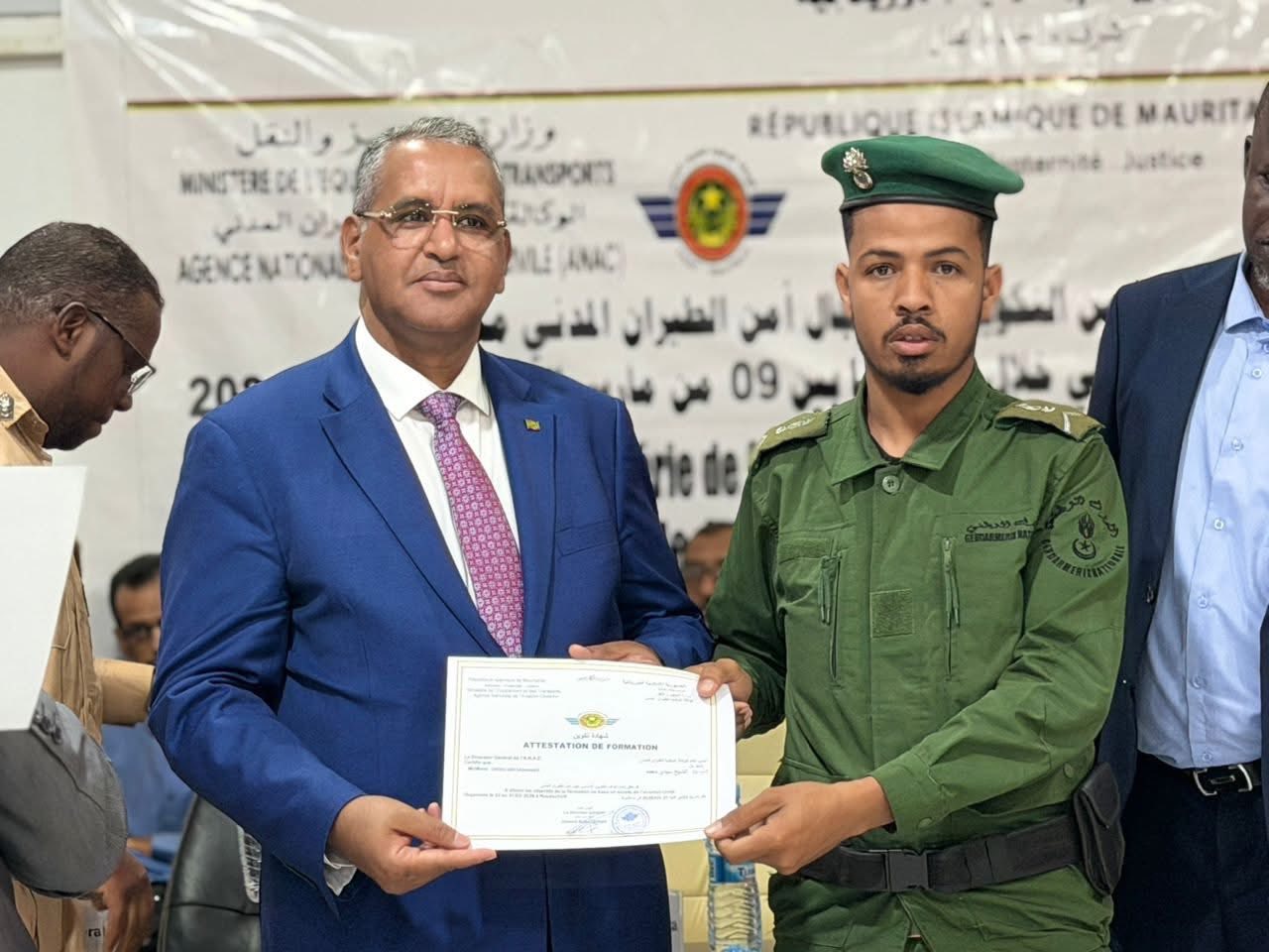 أشرف المدير العام للوكالة الوطنية للطيران المدني، السيد باب أحمد محمد باب أحمد، اليوم الخميس، على حفل اختتام سلسلة من الدورات التكوينية المتخصصة في مجال أمن الطيران المدني، والتي نظمتها الوكالة لصالح بعض الأطقم العاملة بمطار نواكشوط الدولي أم التونسي، خلال الفترة الممتدة من 09 مارس إلى 22 أبريل 2026.