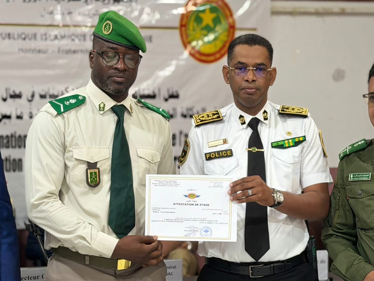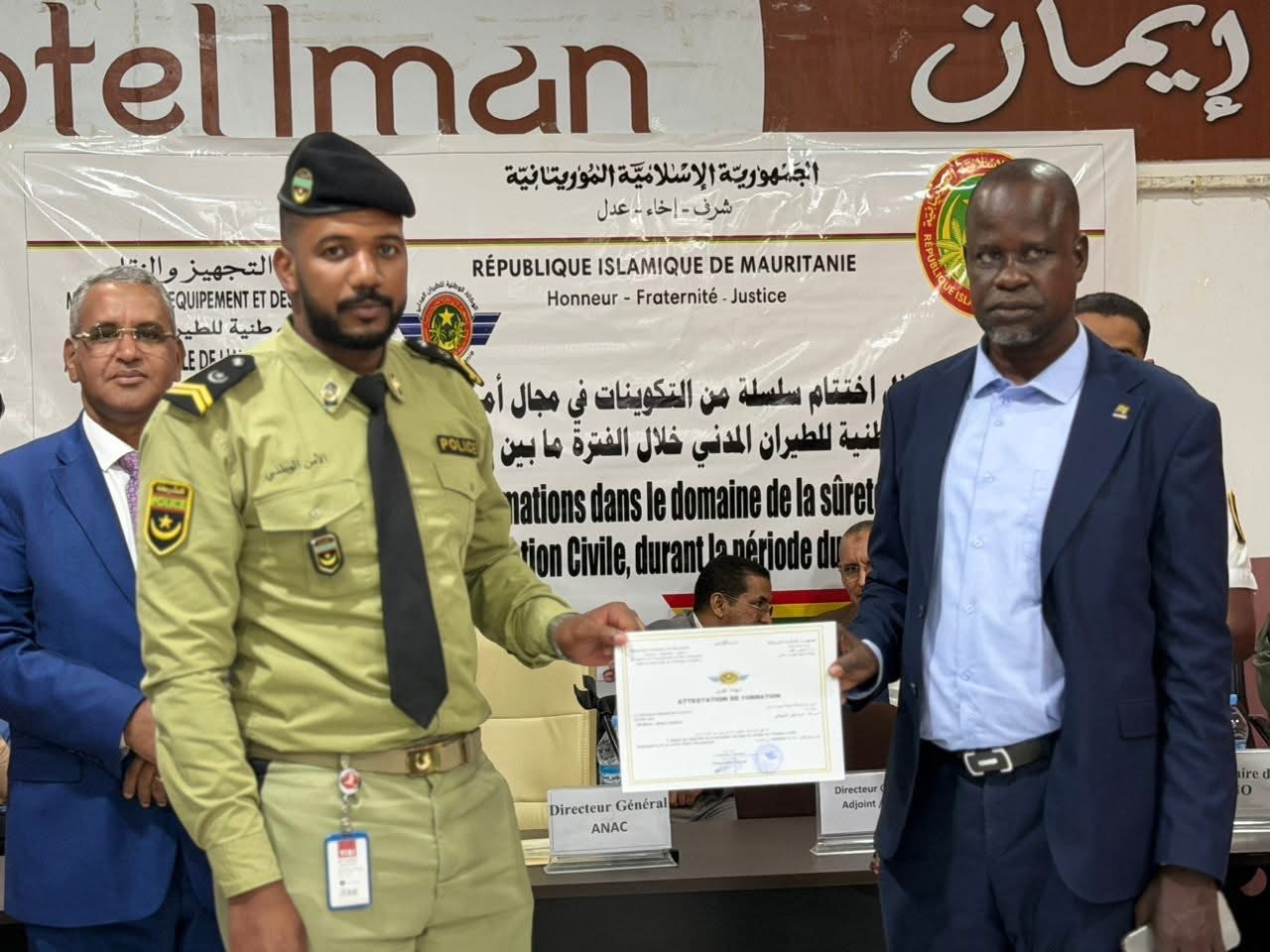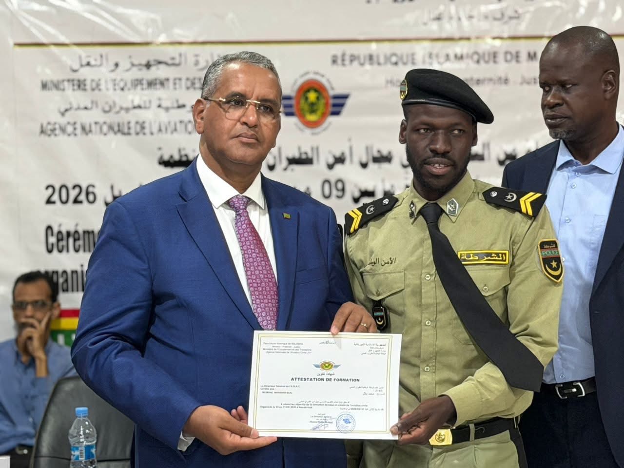 وجرى الحفل بحضور المدير العام المساعد، السيد أمبودج أندودوري، ومدير الأمن والتسهيلات بالوكالة ومنسق أمن المطار وقادة وممثلي القطاعات العسكرية والأمنية العاملة بمطار نواكشوط الدولي أم التونسي، بالإضافة إلى المدير العام لشركة "آفروبورت"، وعدد من مسؤولي الوكالة.