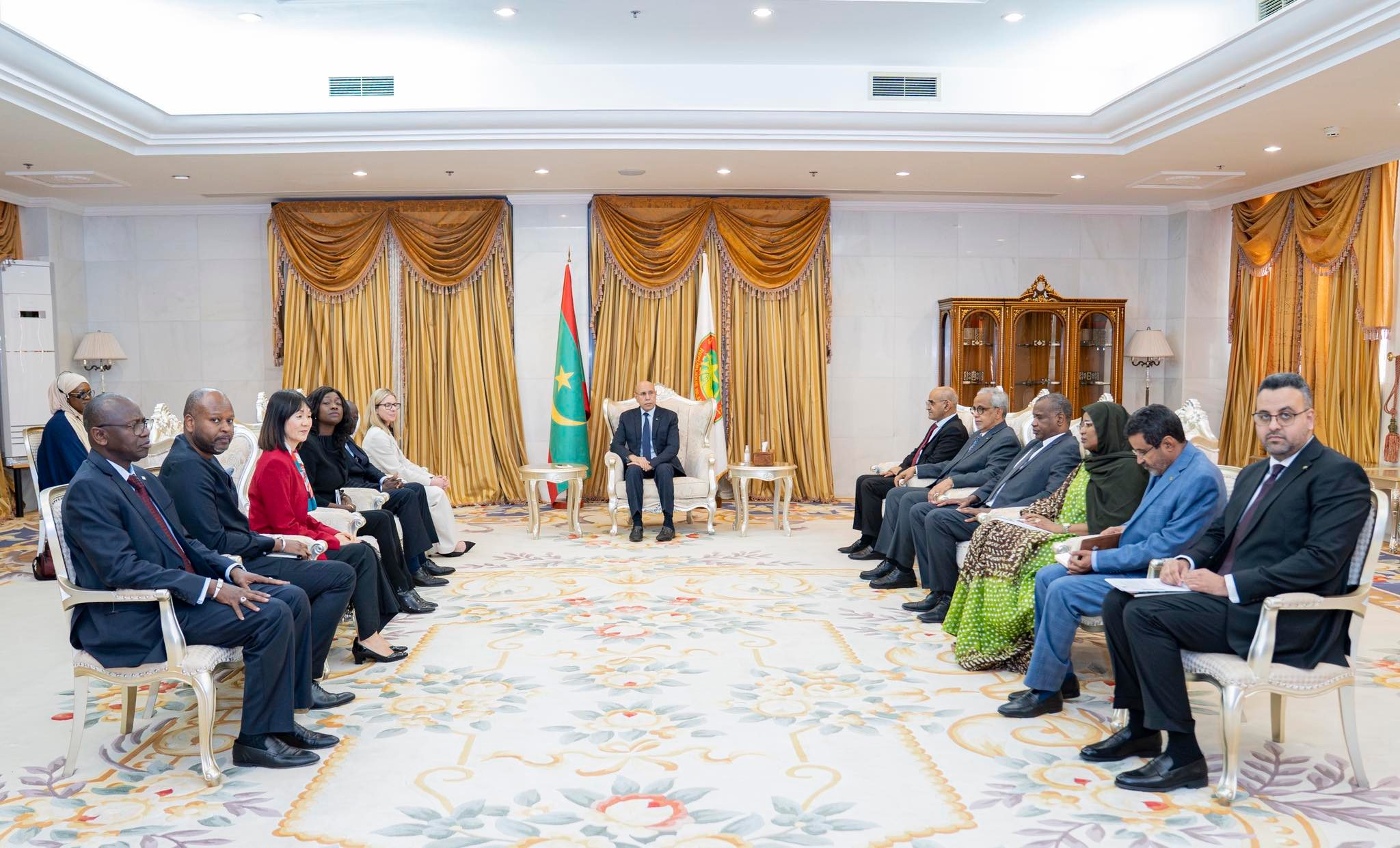 التقى رئيس الجمهورية، السيد محمد ولد الشيخ الغزواني اليوم الخميس بالقصر الرئاسي في نواكشوط بوفد رفيع المستوى من البنك الدولي برئاسة المديرة العامة للعمليات السيدة أنا بيردي (Anna Bjerde).