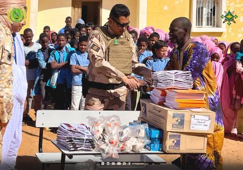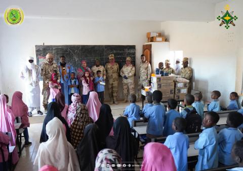 وزع الجيش الوطني كميات من اللوازم المدرسية والرياضية على عدد من مدارس ولاية لعصابه.