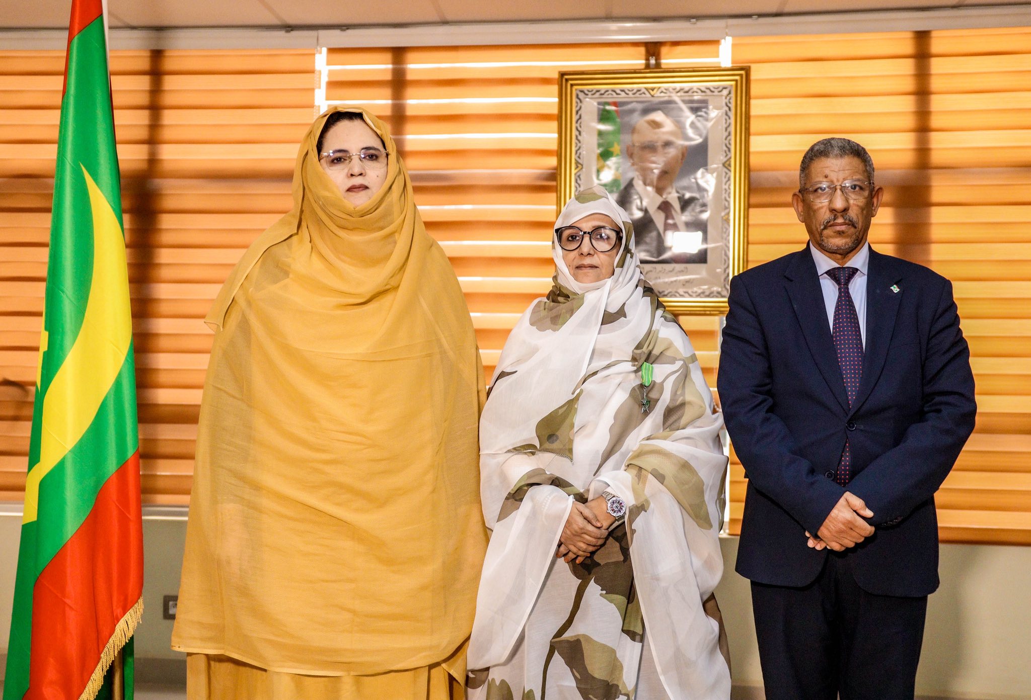 وشحت وزيرة التجارة والسياحة السيدة زينب بنت أحمدناه فى إطار. الفعاليات المخلدة للذكرى الخامسة والستين لعيد الاستقلال الوطني، السيدة خديجة أحمد الدوّ، مكلفة بمهمة؛ بوسام فارس في نظام الاستحقاق الوطني.