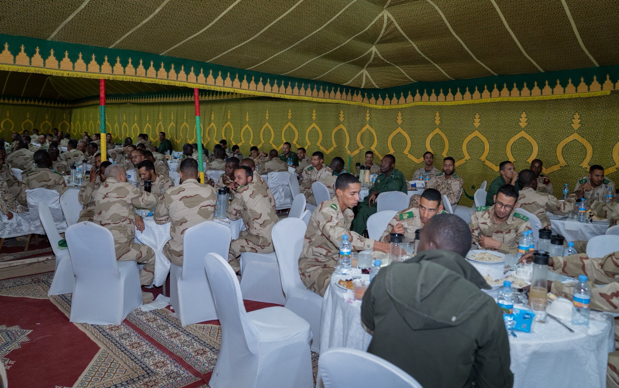 شارك فخامة رئيس الجمهورية، القائد الأعلى للقوات المسلحة، السيد محمد ولد الشيخ الغزواني، مساء اليوم الخميس، أفراد القوات المسلحة وقوات الأمن بحامية أطار إفطارهم الرمضاني، وذلك بمقر الأكاديمية العسكرية لمختلف الأسلحة بمدينة أطار.